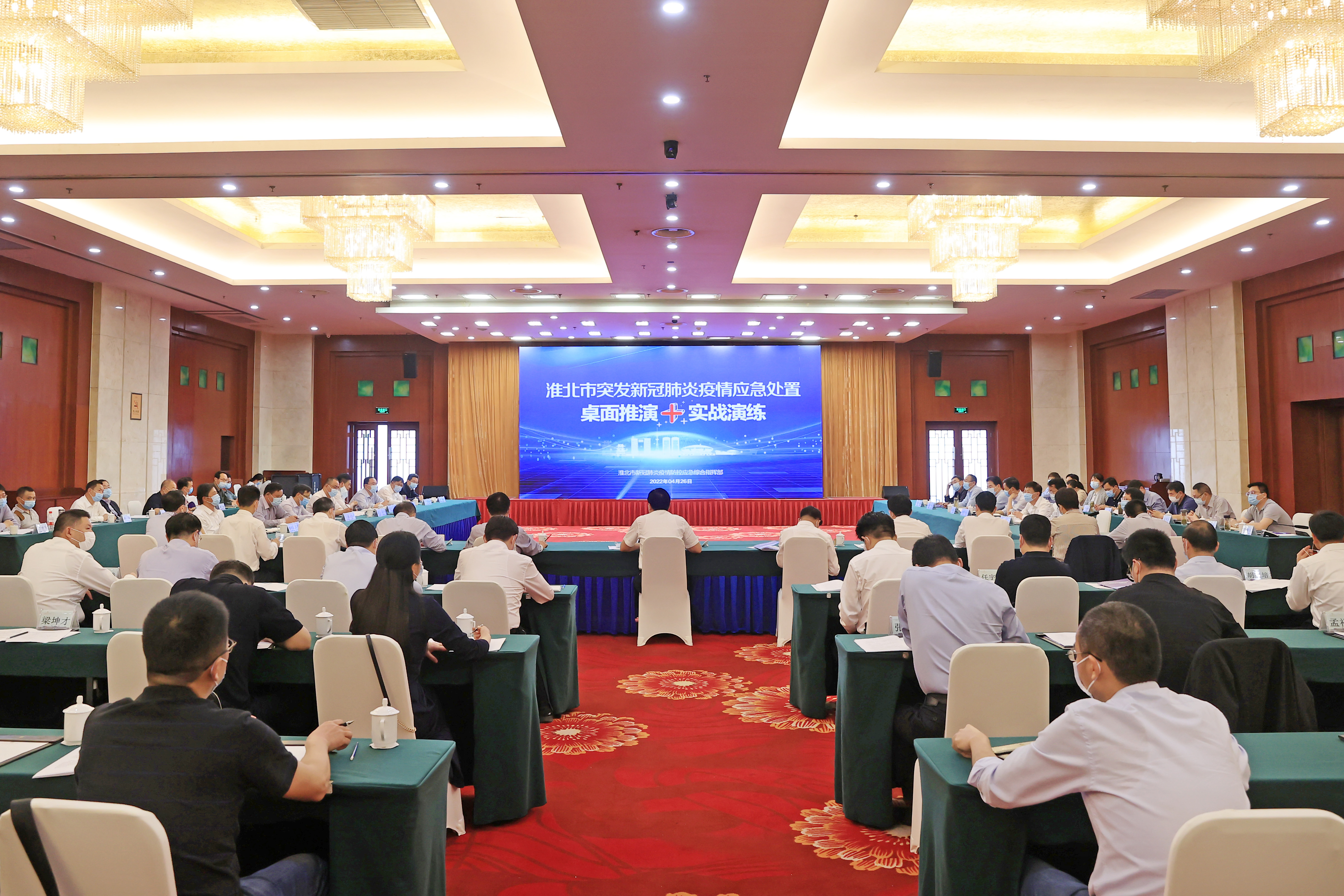 4月26日下午,我市举行极端情况下突发新冠肺炎疫情应急处置桌面推演和实战演练。市委书记、市疫防指指挥长张永观摩桌面推演并作点评讲话。市领导钱界殊、周天伟、李朝晖、单强、汪继宏、章银发、陈英、梁龙义、黄韡观摩桌面推演或实战演练。
